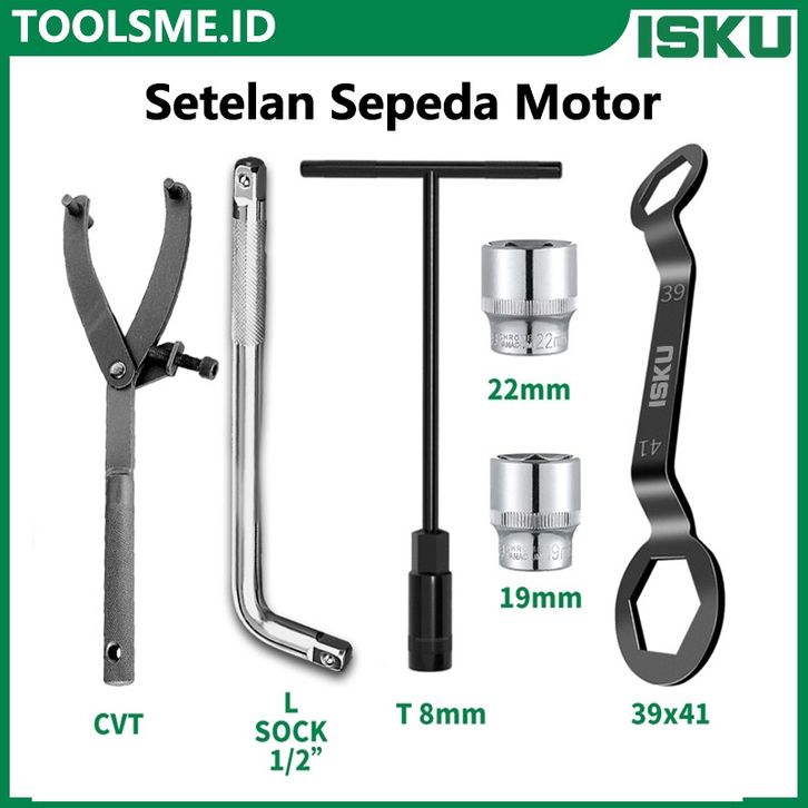 Paket Set 6pcs ISKU Kunci Tahanan Mur Kopling 39-41+ Kunci T 8mm + Mata Shock 19 22mm+Gagang Sock