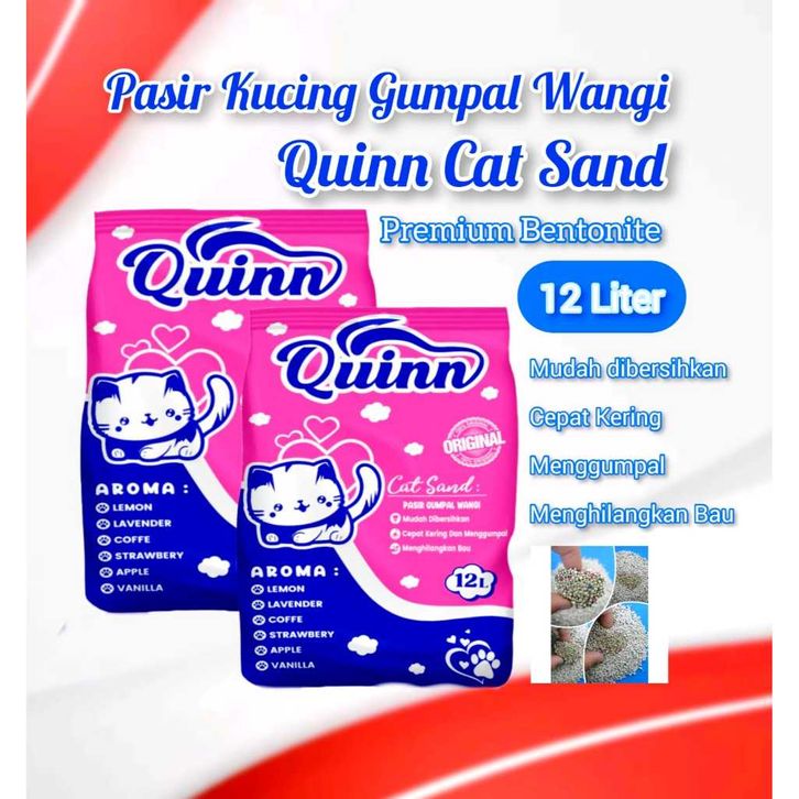 12 Liter QUIN Cat Sand Pasir Kucing Gumpal Wangi-Anti Bakteri