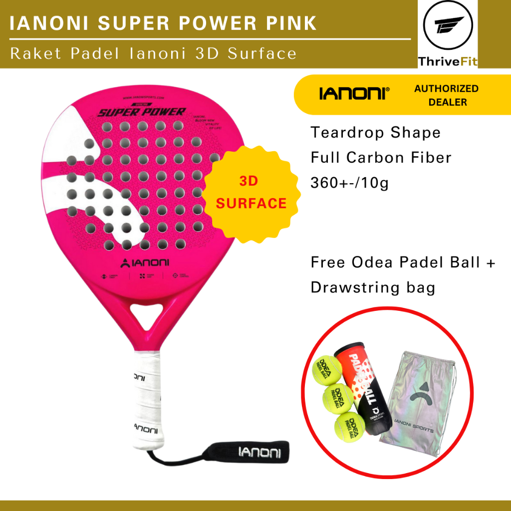 Raket Padel 3D Surface Pink | Super Power Padel Racket Original Ringan & Tahan Lama