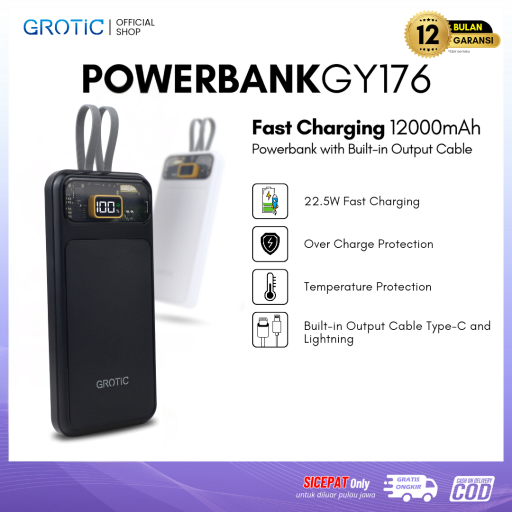 [Star]Powerbank Fast Charging 12000mAh With Dual Port Type C And Lightning GY176