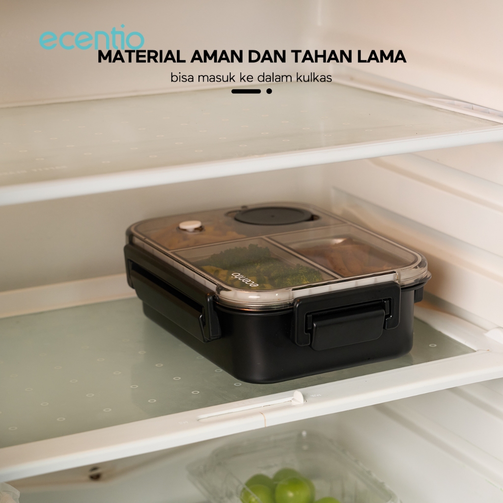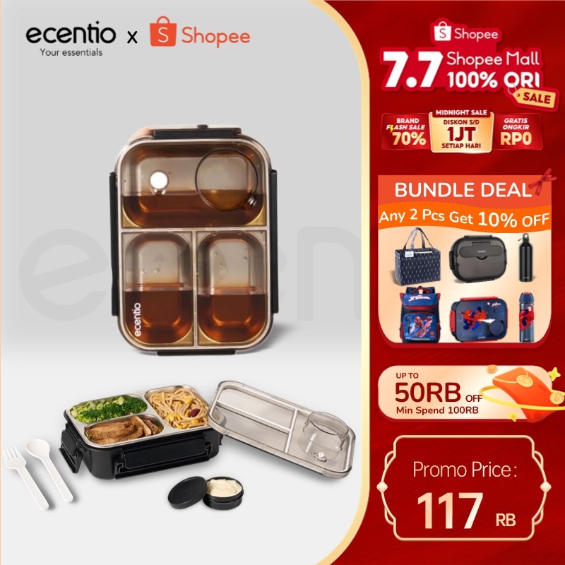【20 ANTI TUMPAH】ECENTIO LUNCH BOX STAINLESS 800ML SEKAT 3 DENGAN SENDOK SUMPIT FREE KOTAK SAUCE KECIL