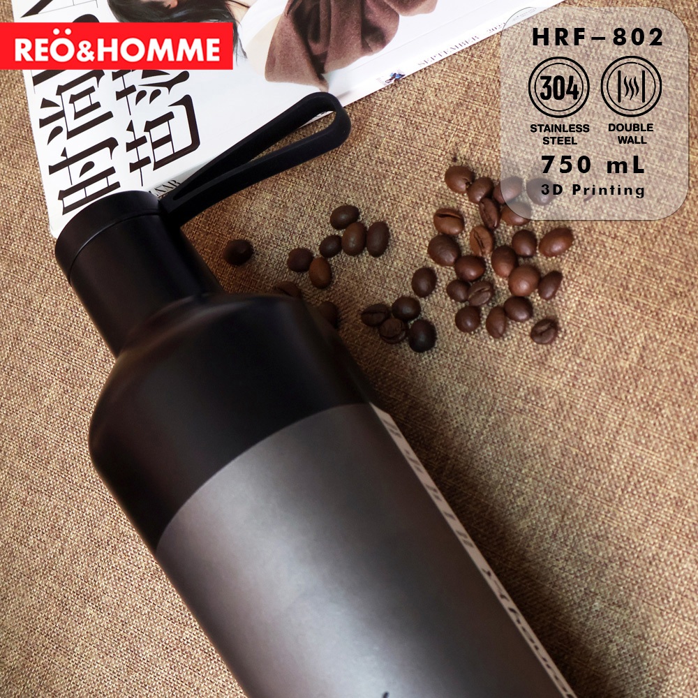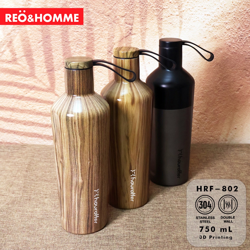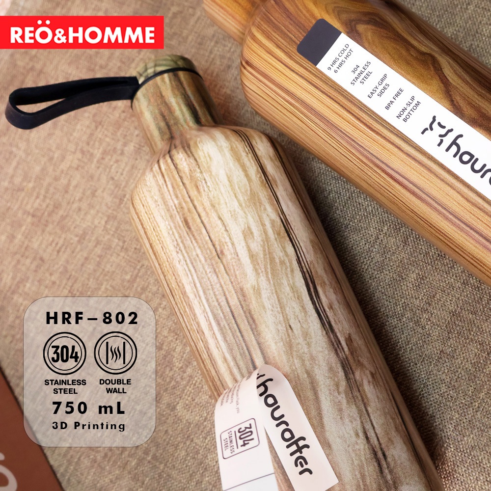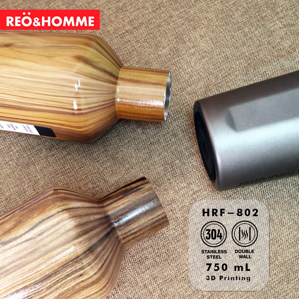 REO&HOMME BOTOL MINUM PURE STAINLESS SUS 304 750 ML INSULATED TUMBLER LEAKPROOF DESIGN 3D PRINTING MOTIF KAYU HRF802