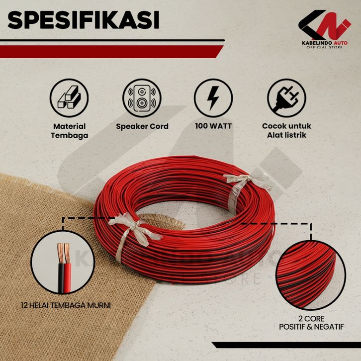 Kabel Speaker / Kabel Tweeter / Kabel Audio Mobil 2x12 100m Serabut Tembaga