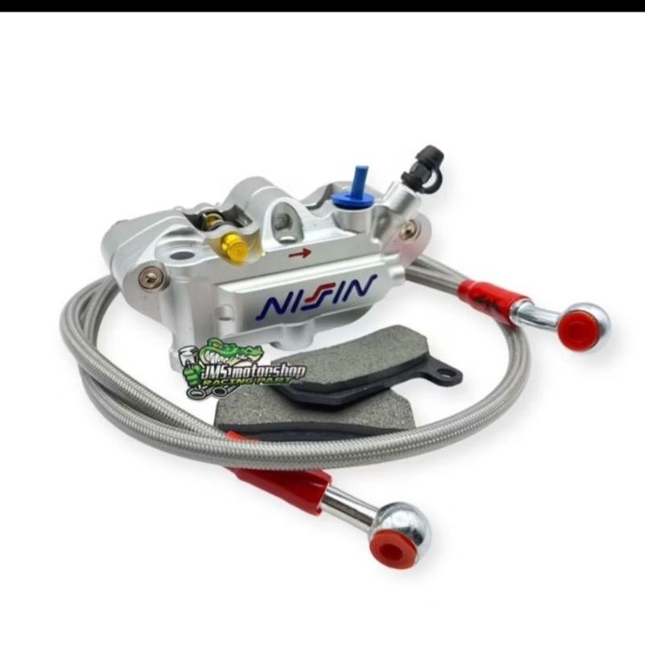 kaliper monoblok cnc 4 piston plus selang rem depan panjang 95cm kaliper monoblok full cnc universal smua motor jms