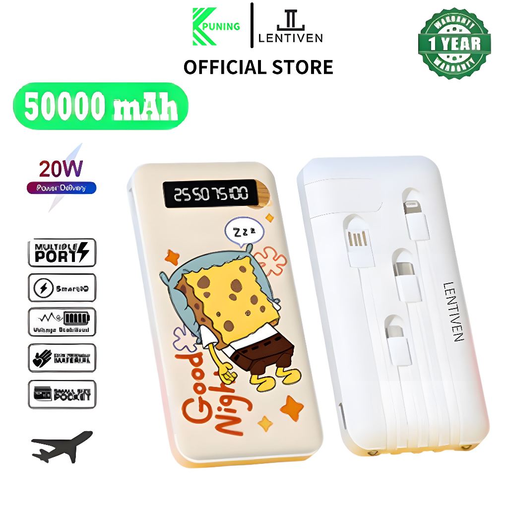 [Star]LENTIVEN Powerbank 50000mAh 4 Kabel Cute LED Portable Fast Charger