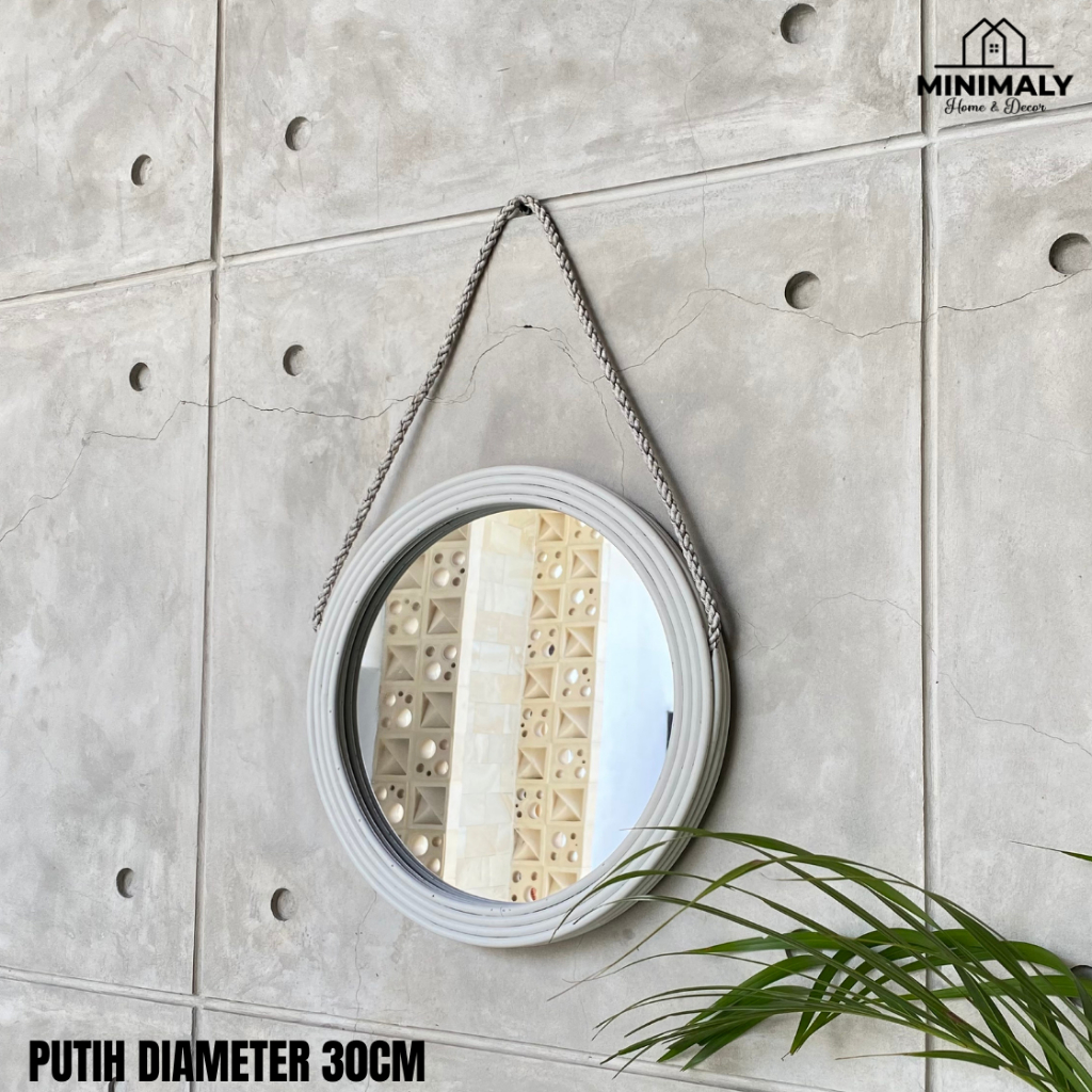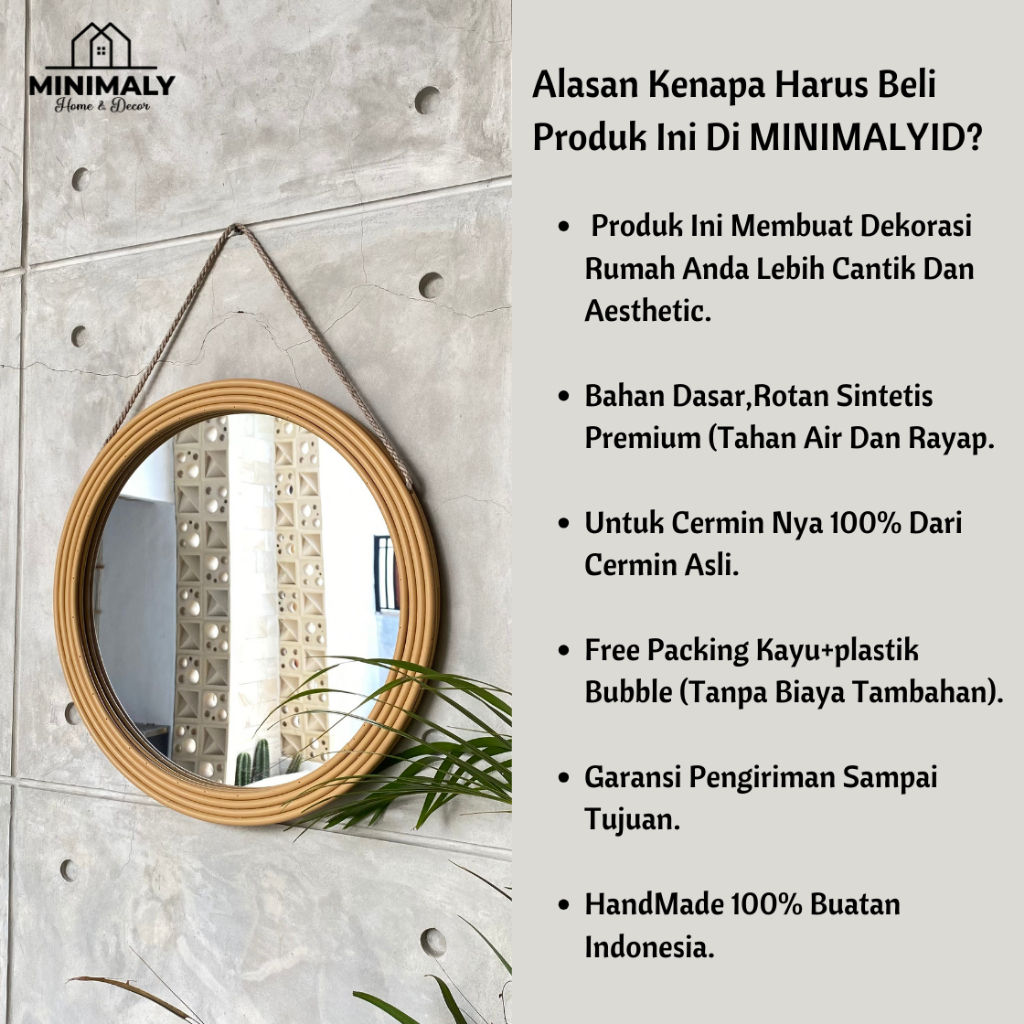 Cermin Rotan Bulat (TAHAN AIR DAN RAYAP) Cermin Gantung Rotan Cermin Dinding Rotan Cermin Kamar Mandi Cermin Ruang Tamu