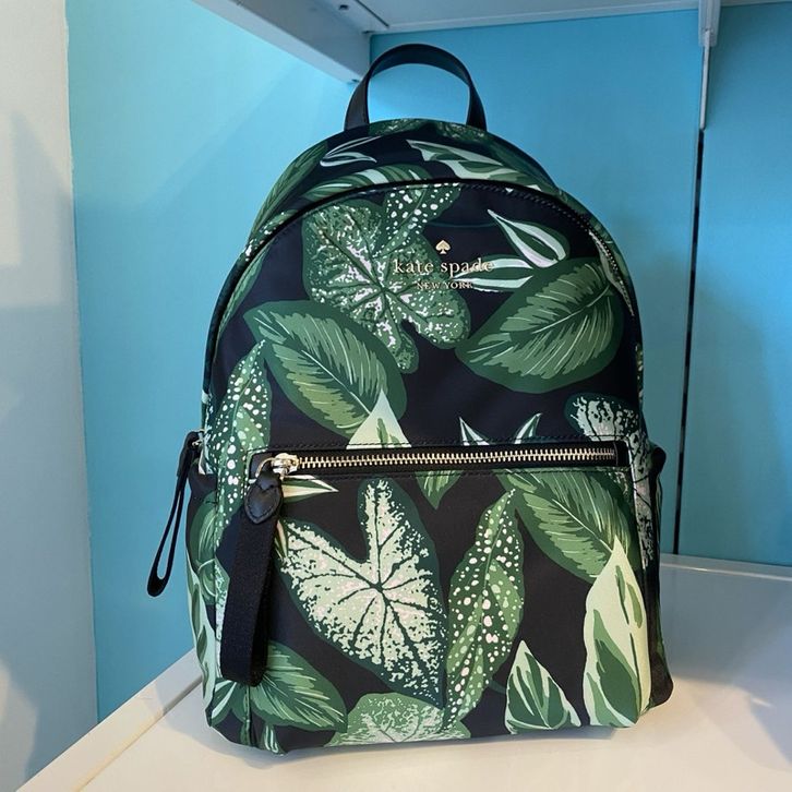 KS KATE SPADE KH414 CHELSEA GREEN FERN FOLIAGE LEAVES PRINT NYLON BACKPACK