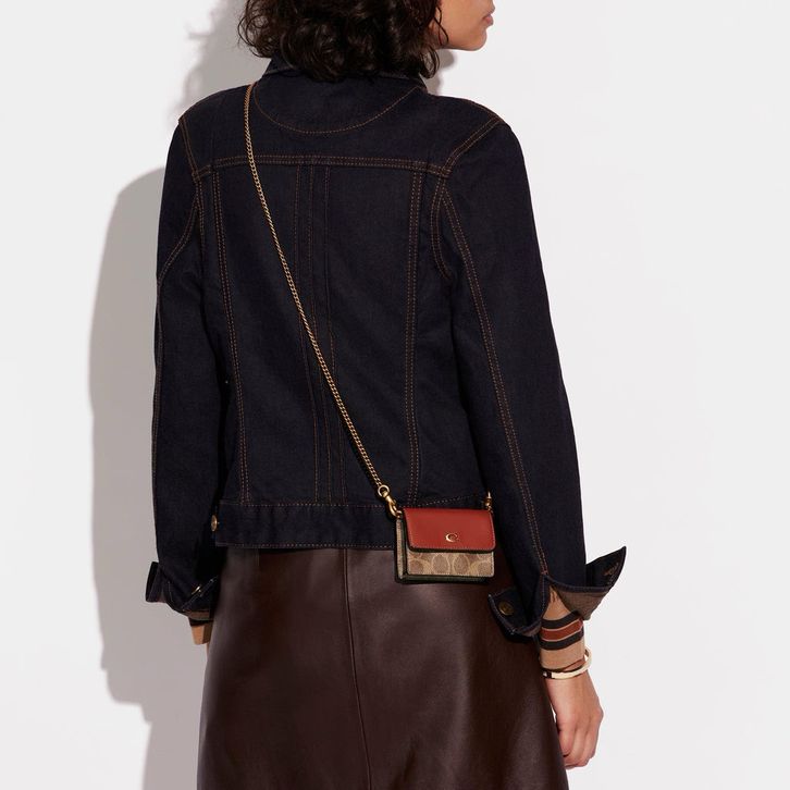 TAS SLEMPANG CH C7211 HALF FLAP CARD CASE IN COLORBLOCK SINGNATURE CANVAS