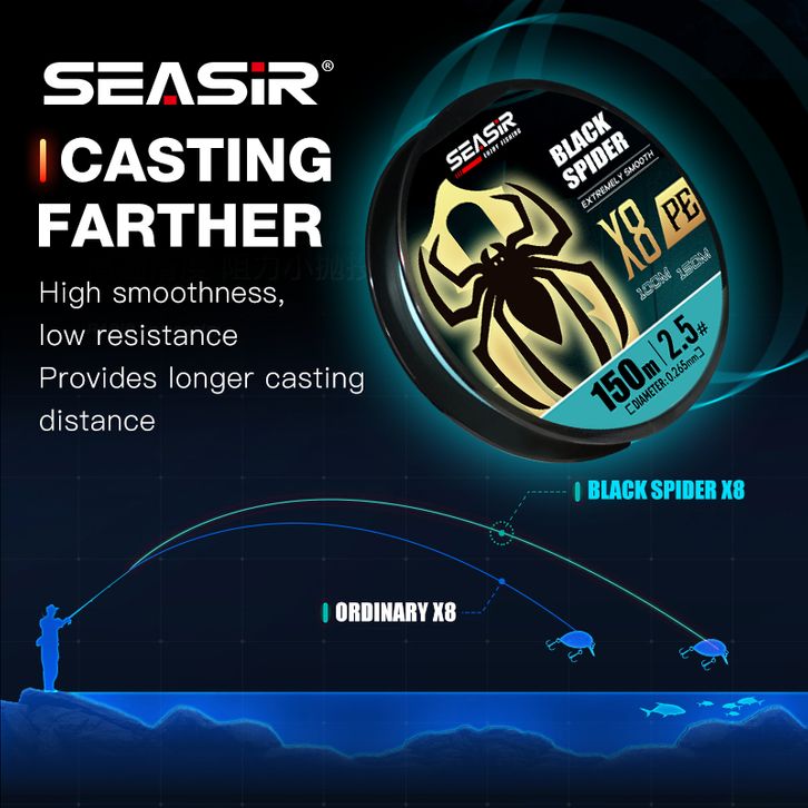 DISKON OFFICIAL SEASIR Black Spider Senar PE X8 Senar Pancing PE 150 Meter, 7.5kg-21kg P-Series Pancing Braided Fishin