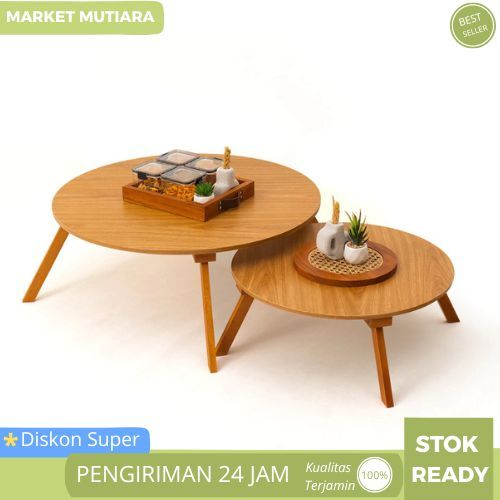 Meja Lipat Bulat Lesehan Makan Ruang Tamu Belajar Multifungsi Minimalis Kayu MJP1 2