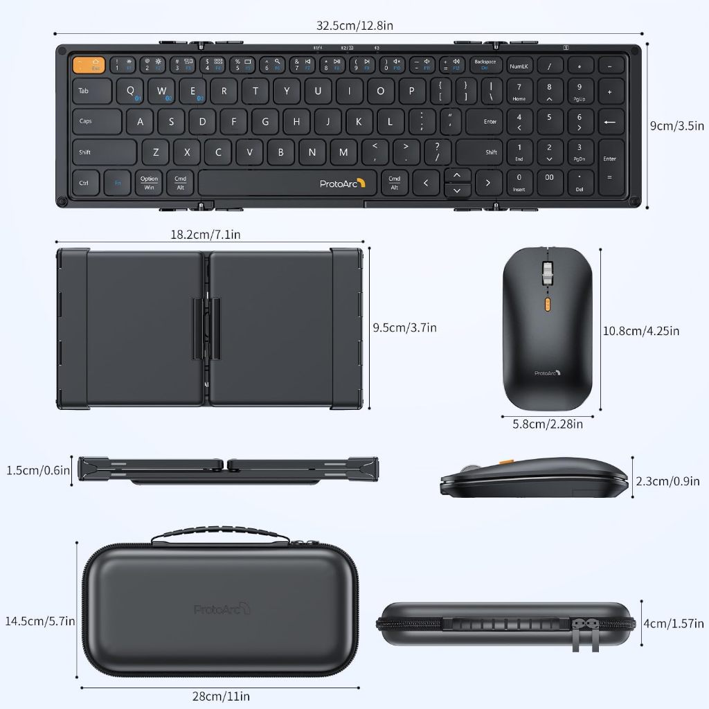 ProtoArc XKM01 Mini Foldable Keyboard Lipat and Mouse Wireless Triple Bluetooth Combo Compact-Size Rechargeable with Har