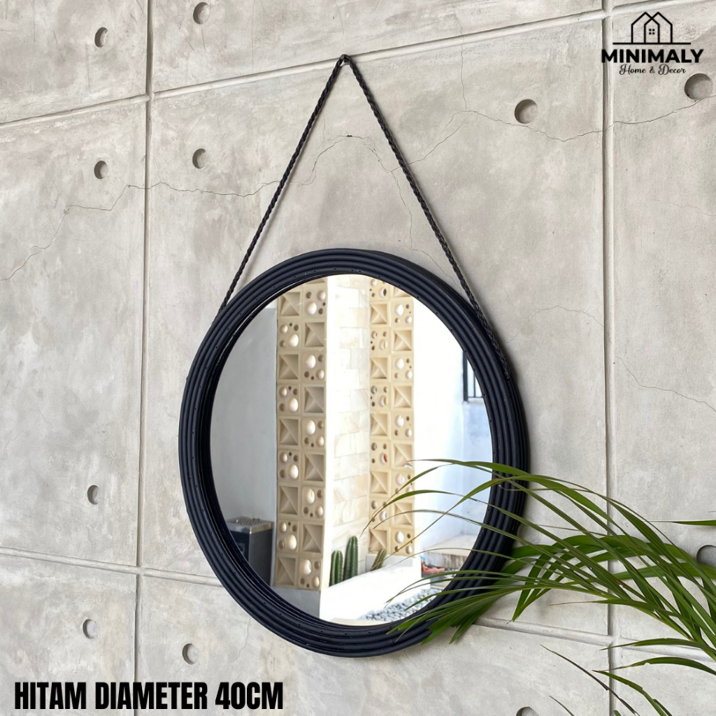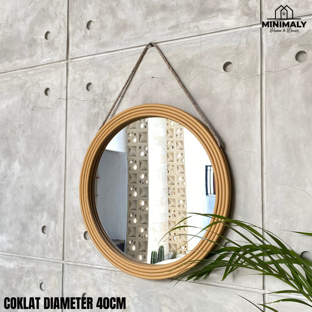 Cermin Rotan Bulat (TAHAN AIR DAN RAYAP) Cermin Gantung Rotan Cermin Dinding Rotan Cermin Kamar Mandi Cermin Ruang Tamu