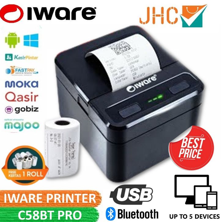 Printer Kasir Thermal IWARE C58BT-Pro 58mm USB Bluetooth Multi Devices - USB+BT