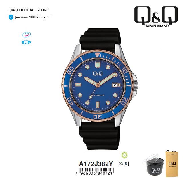Q&Q QnQ QQ Original Jam Tangan Pria Analog Rubber - A172 A172J 5 BAR