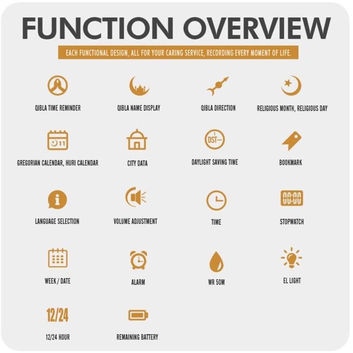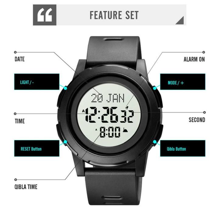 Jam Tangan Pria Muslim Adzan Penunjuk Arah Qiblat Digital Men's Watch