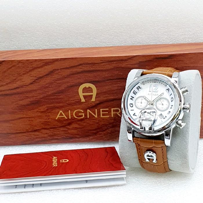 JAM TANGAN PRIA - AIGNER FANO 58503 - TALI BAHAN KULIT - CHRONO & TANGGAL - DIAMETER 4.5cm - FREE