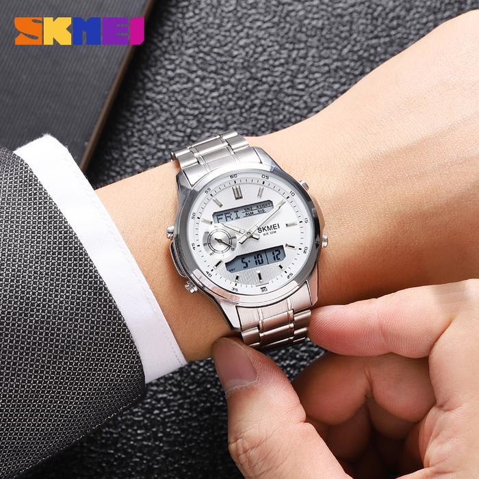 Jam Tangan Digital Analog Pria SKMEI - 2284 - SILVER Black water resist 30m