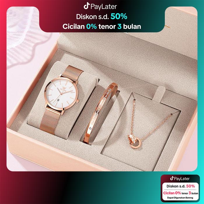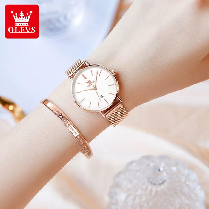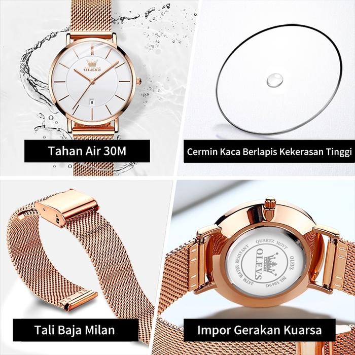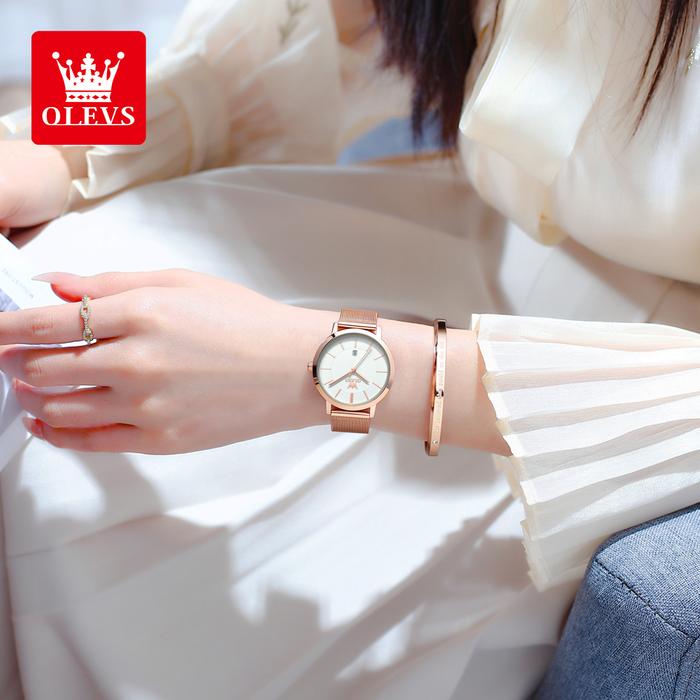OLEVS Jam Tangan Wanita Original Anti Air Tahan Kecil Branded Elegan Analog Rose Gold Ultra-thin