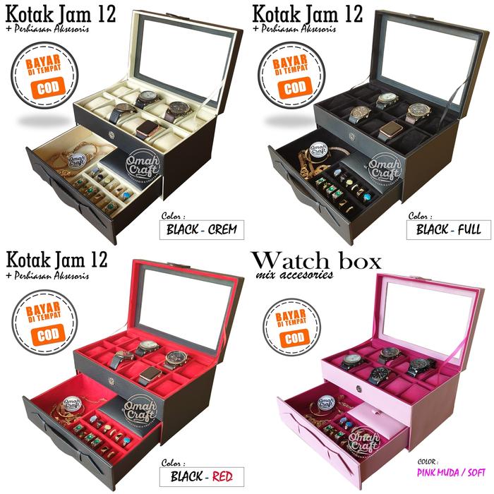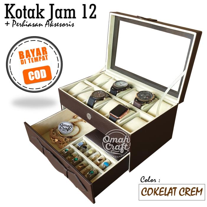 Kotak Jam Tangan isi 12 + Box Tempat Penyimpanan Perhiasan dan Aksesoris Emas Gelang Kalung Cincin