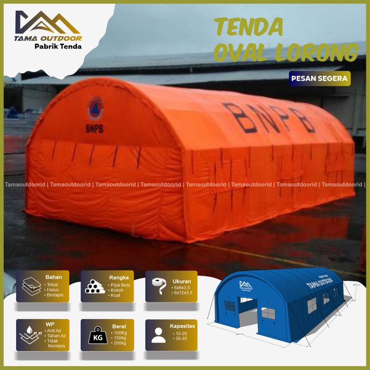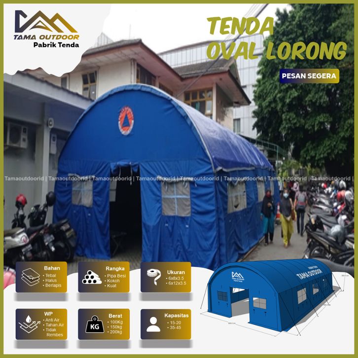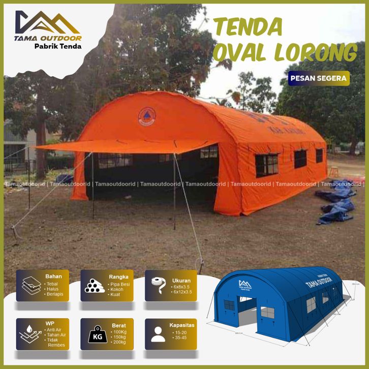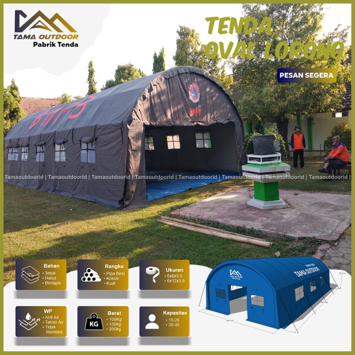 TERMURAH Tenda Lorong Oval Posko Serbaguna - Pengungsi BNPB Uk. 6M x 12M x 3.5M Melengkung ocesg