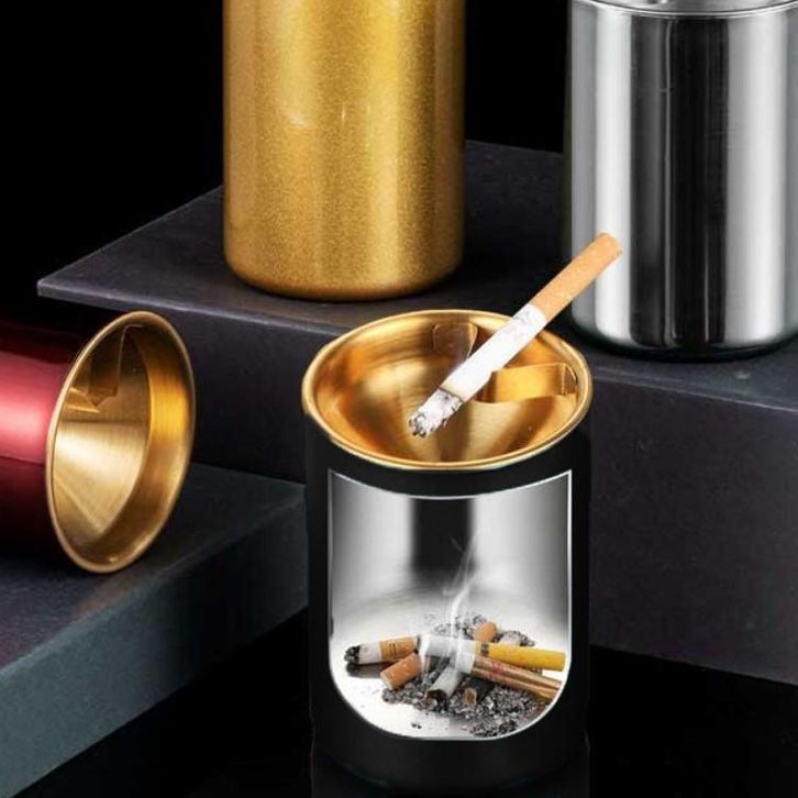 Gegedbako - Asbak Stainless Steel Windproof Ashtray - GegeDbako - HL7 - Black