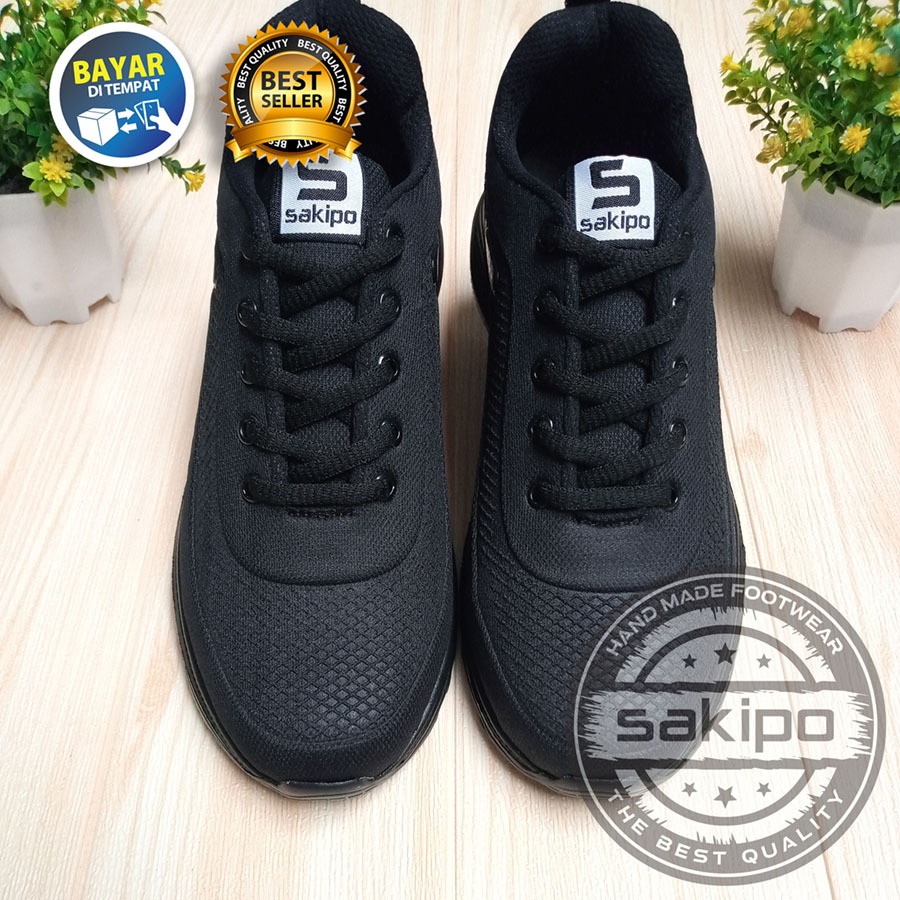 Sepatu Sekolah Hitam SD SMP SMA SMK Kuliah Sepatu Olahraga Jogging Ringan Bertali Hitam Sakipo