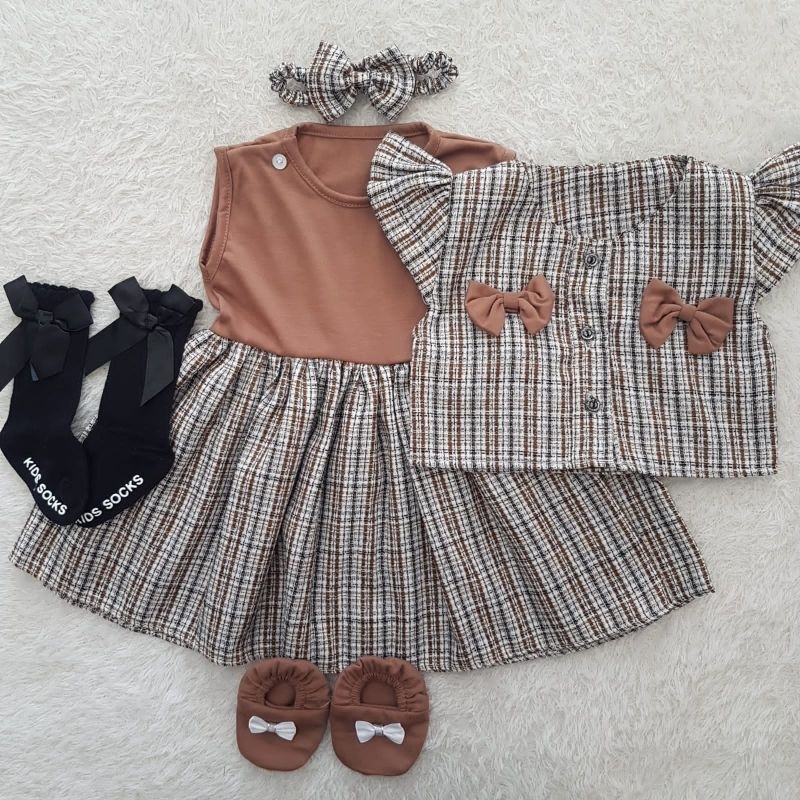 BAJU BAYI DARLING DRESS SET KATUN MIX TWEED