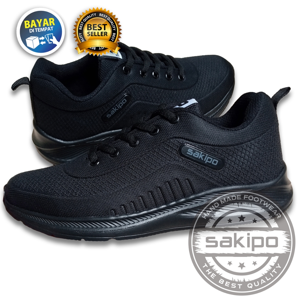 Sepatu Sekolah Hitam SD SMP SMA SMK Kuliah Sepatu Olahraga Jogging Ringan Bertali Hitam Sakipo