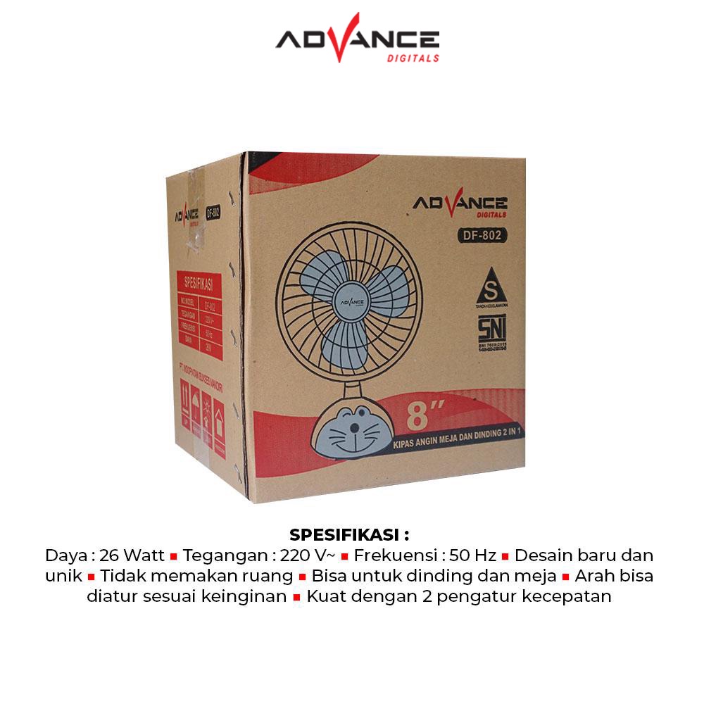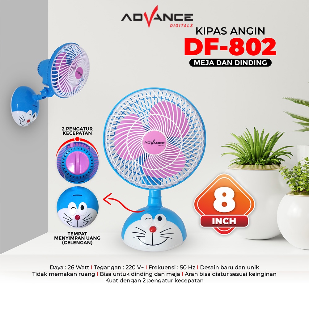 Kipas Angin 8" Karakter Advance DF-802 2in1 Kipas Dinding Kipas Meja Doraemon