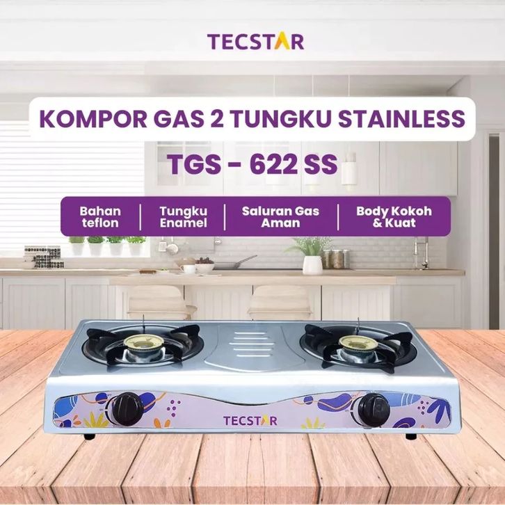PROMO Kompor Tecstar / Fremont Stainless Steel / Teflon Paket + Selang + Regulator TGS-322 SS / TGS-622 SS Garansi Resmi