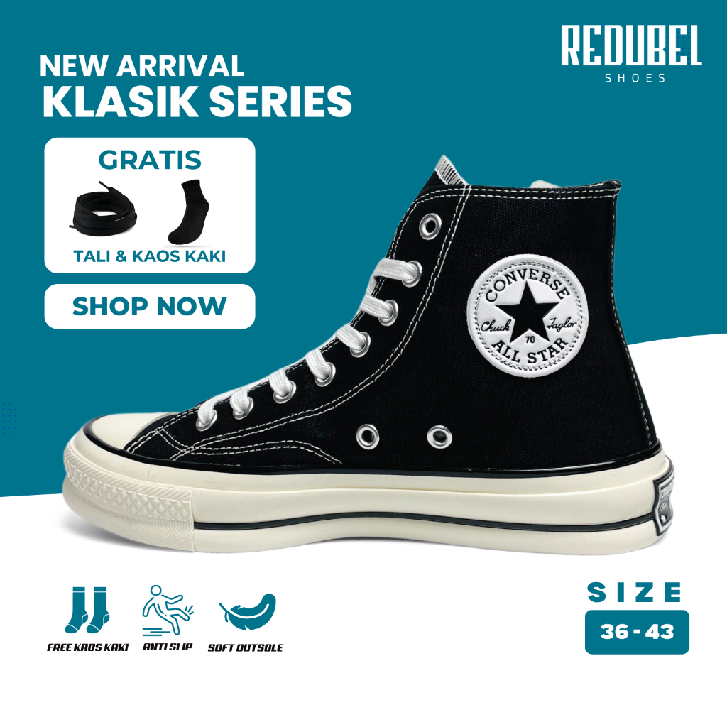 SEPATU CONVERSE ALL STAR 70S BLACK WHITE CHUCKTAYLOR SEPATU SNEAKER CASUAL KANVASHIGH BIG SIZE 45-46