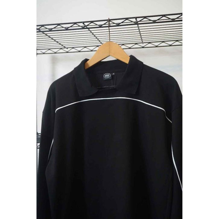Kaos Boxy Piped Polo Long Sleeve - Polo Lengan Panjang Boxy Berlis Abyad Apparel Pro Project