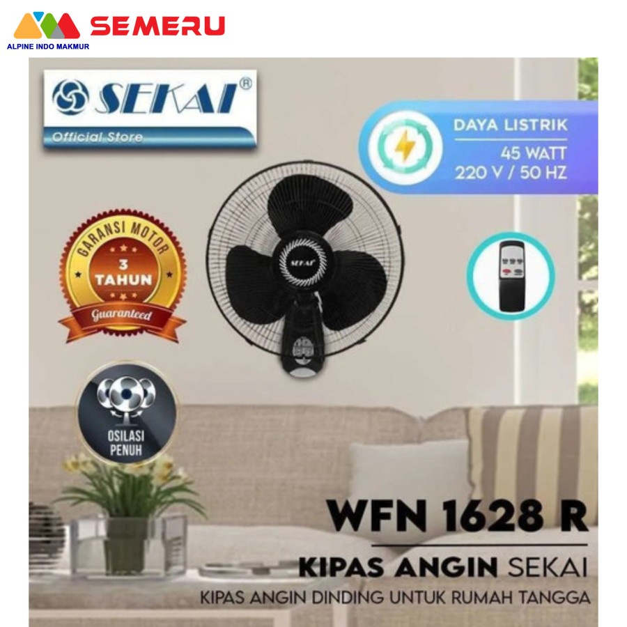 Sekai Wall Fan 16" + Remote Hemat Listrik