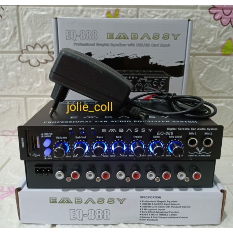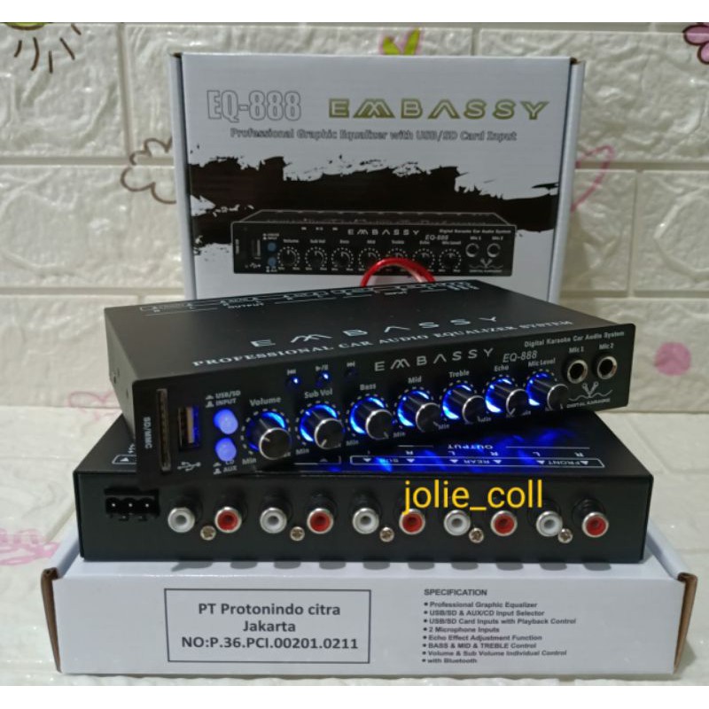 Audio Mobil Murah Komplit - Parametrik equalizer Embassy EQ-888 Bluetooth free adaptor preamp usb karaoke Murah