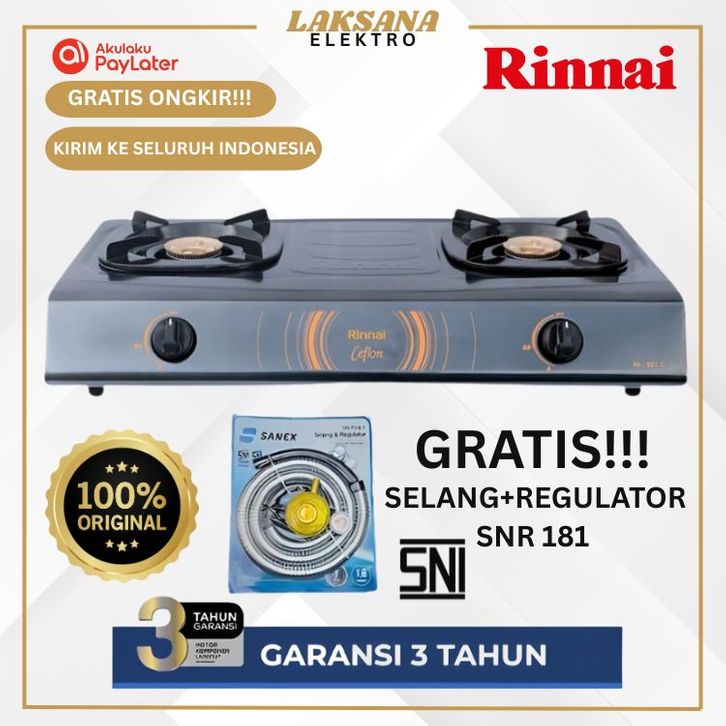 Kompor Gas Rinnai 2 Tungku RI 522C Paket Hemat+Regulator Terbaru Original Best Store