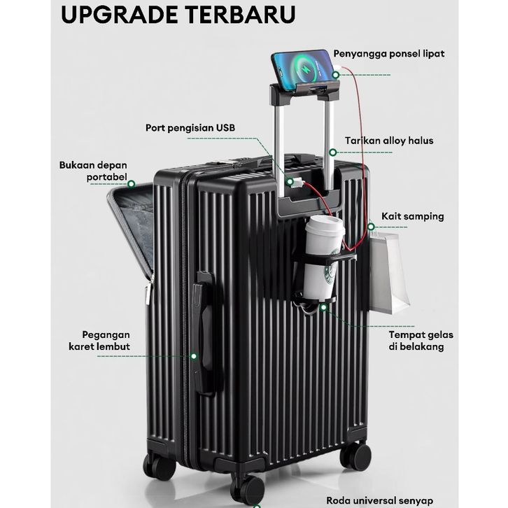 Koper 20 Inci Koper 16 Inci Bagasi Kabin Kompartemen Laptop Tempat Gelas Pengisian Daya USB