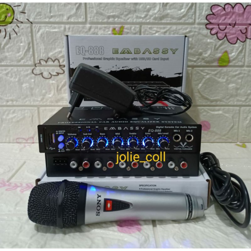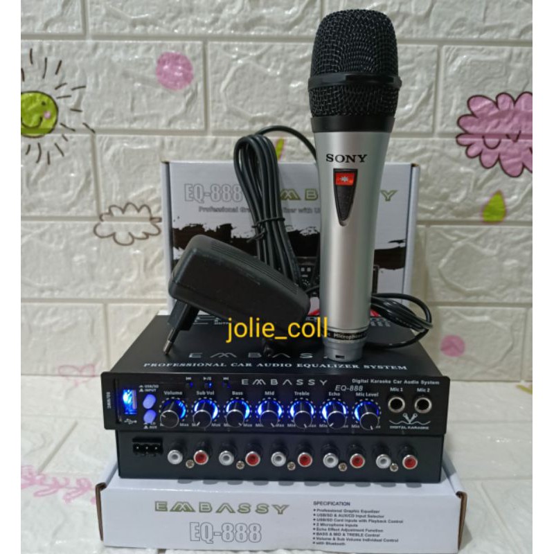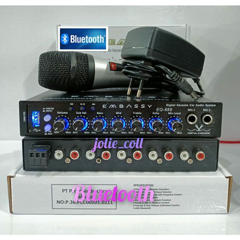 Audio Mobil Murah Komplit - Parametrik preamp Embassy EQ-888 Bluetooth karaoke usb free adaptor dan mic original