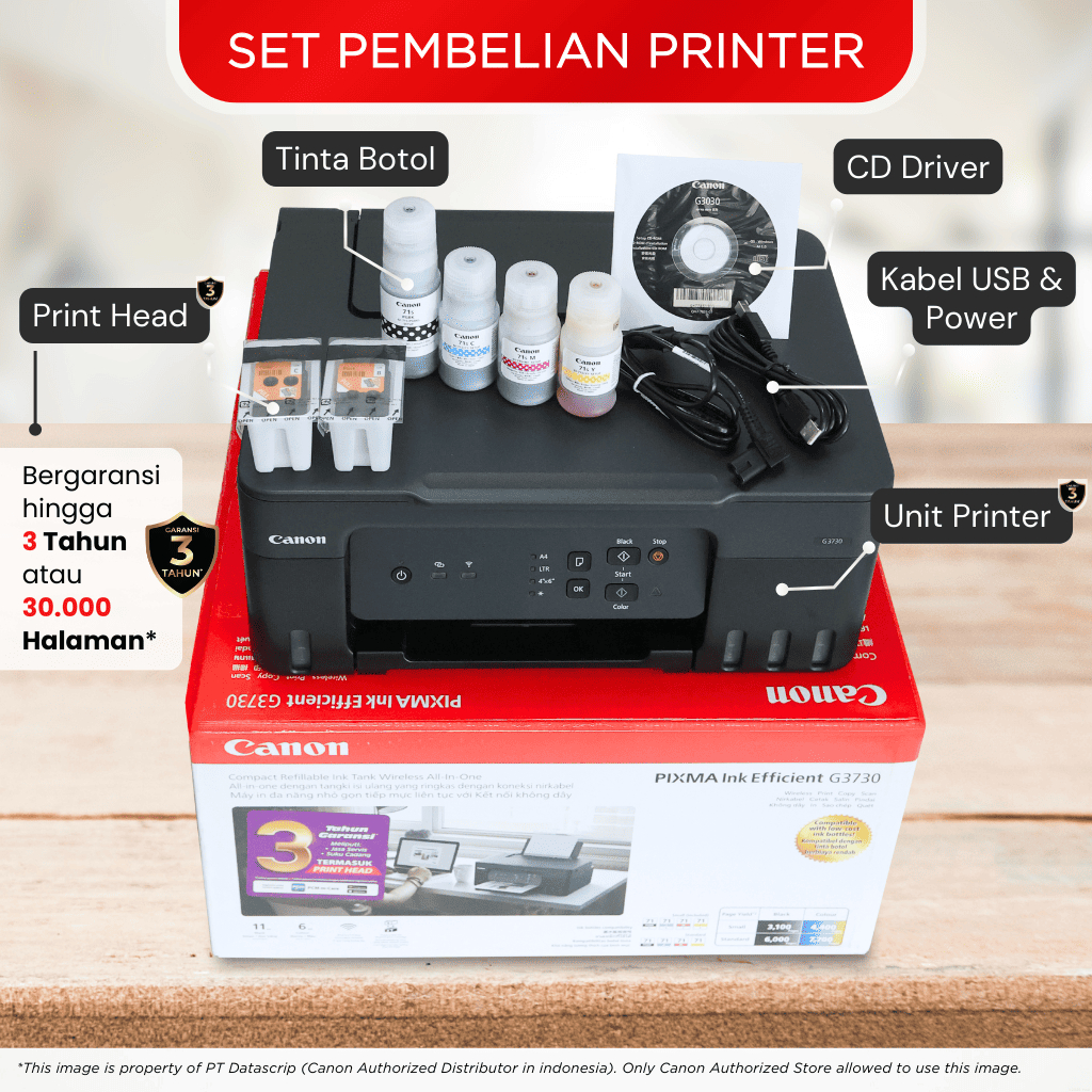 Printer Wifi Canon G3730 Print Scan Copy - Original & Garansi Resmi - Printer MegaTank Pengganti G3000 L3150 L3250 415 5