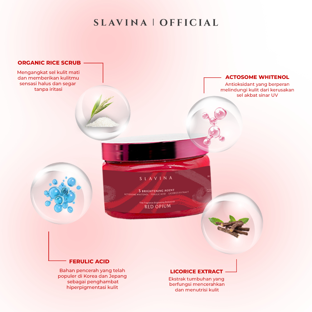 Body Scrub SLAVINA Organic Rice lulur badan eksfoliasi mencerahkan kulit Original Official Store