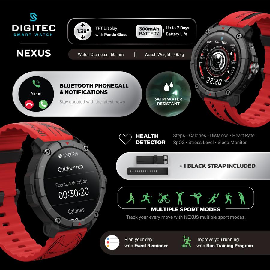 Digitec Smart Watch NEXUS IRON MAN Jam Tangan Pria Digital Smartwatch MARVEL IRONMAN Pattern 2 Limited Edition