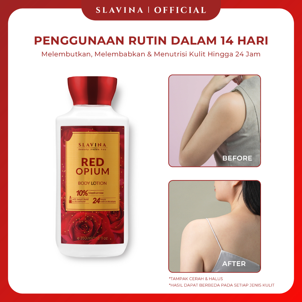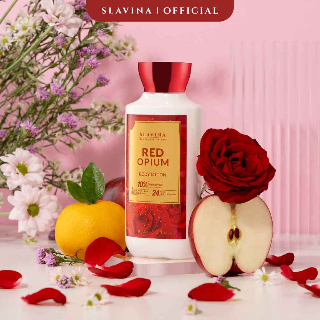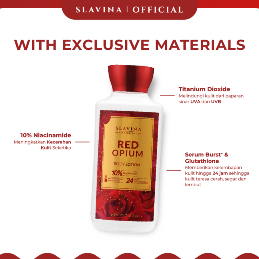 Body Lotion SLAVINA Mencerahkan Red Opium Niacinamide Whitening Original Official Store