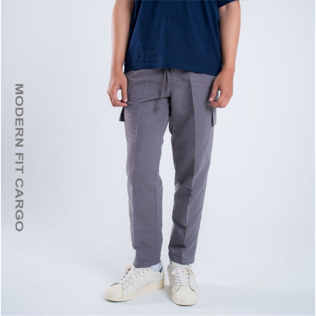 ZONKAS Modern Fit Cargo Panjang Pria | Celana Cargo Panjang Pria Dark Grey
