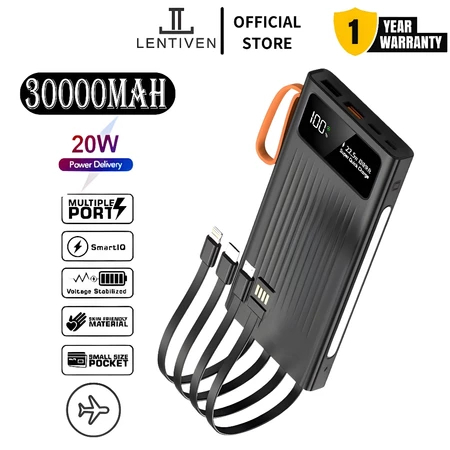 LENTIVEN POWERBANK MINI 30000MAH MINI FAST CHARGING WITH 4 USB LED DISPLAY P57 ORIGINAL MURAH TANPA DP PORTABLE