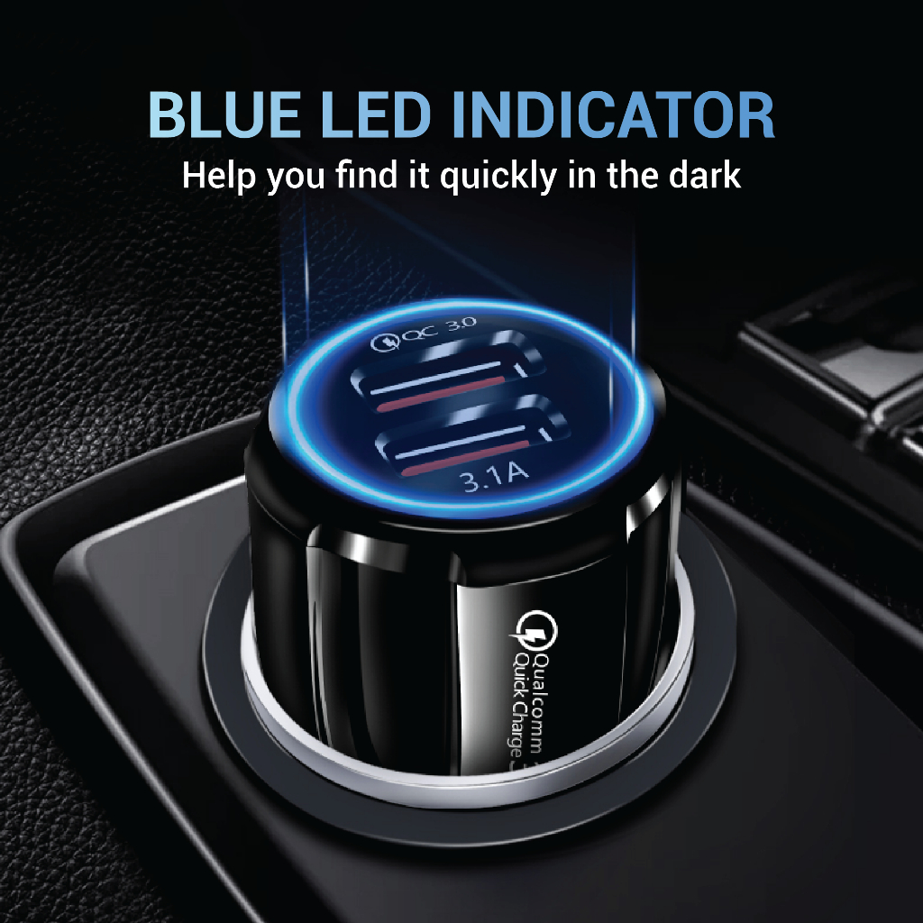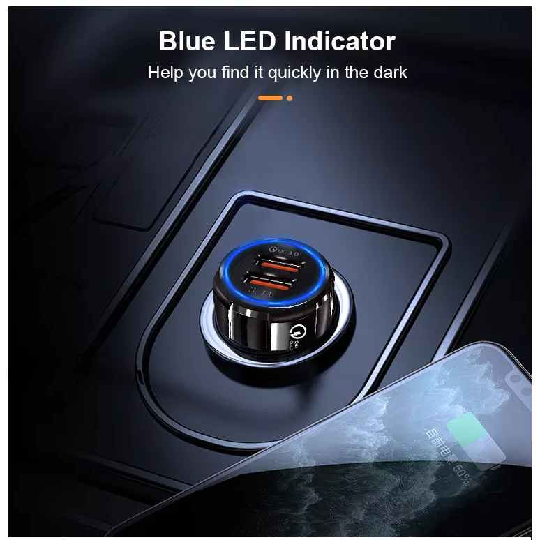 ADAPTOR CHARGER MOBIL MOTOR HP 2 PORT DUAL USB 3.1A QC 3.0 FAST CHARGING AH062