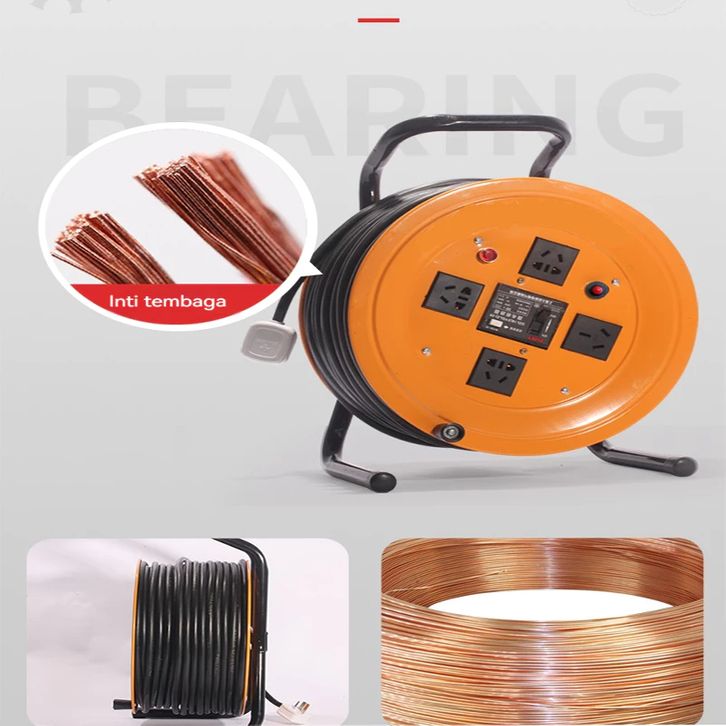 REAIM Kabel Roll 15 Meter Stop Kontak 4 Lubang Kabel Bok Colokan Listrik Premium Kabel Troli Kabel Bergerak
