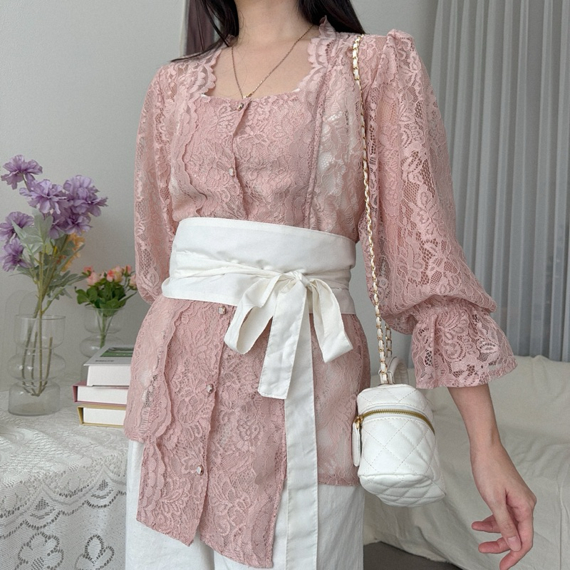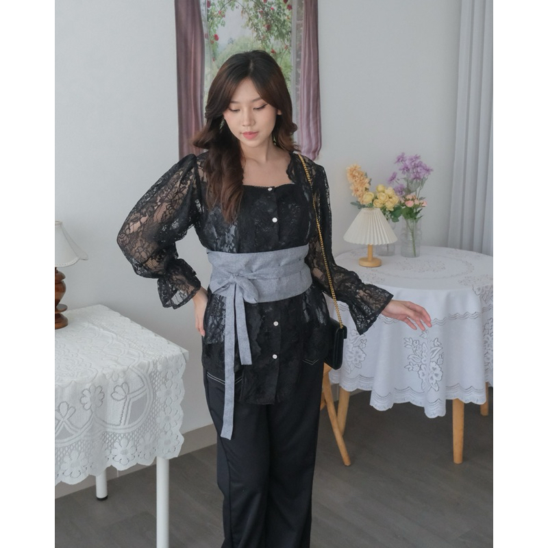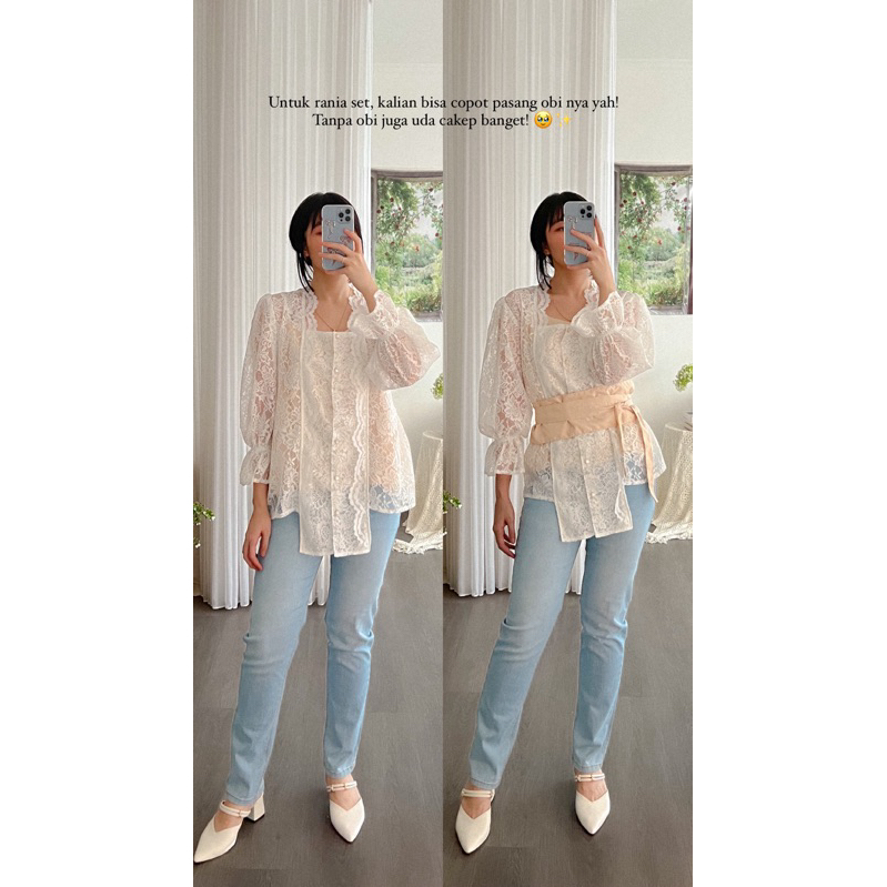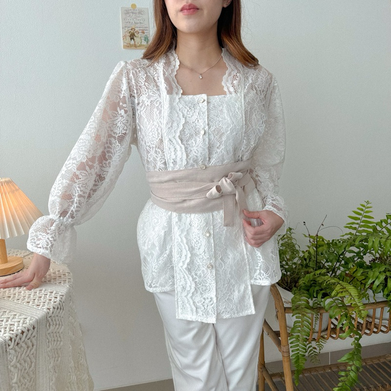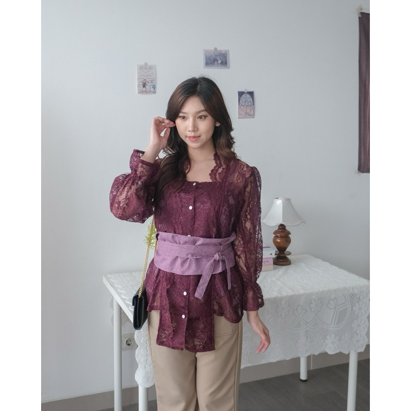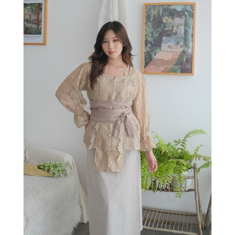 KANON - Rania Lace Kebaya Blouse with Obi - Blouse Brukat Model Kebaya Modern dan Obi
