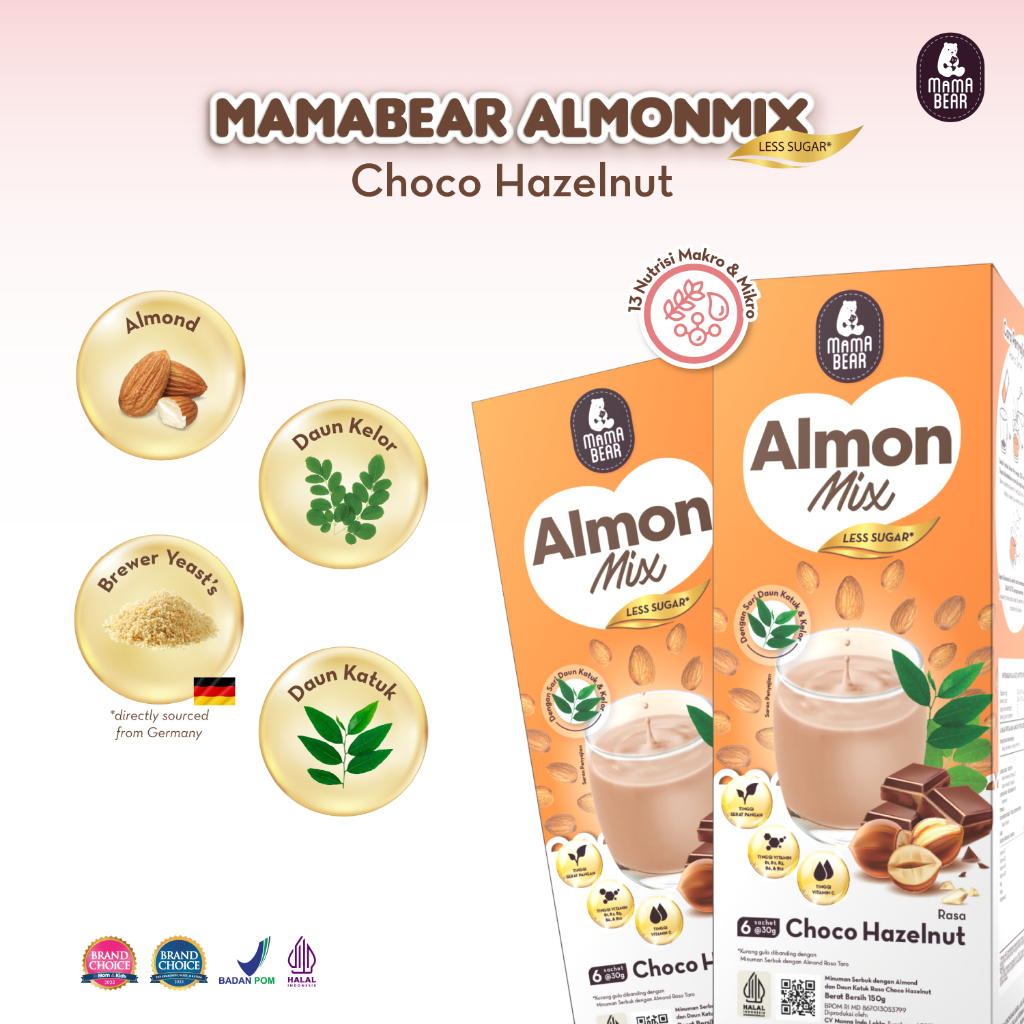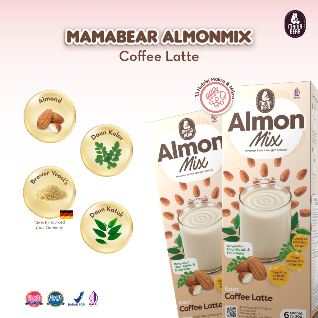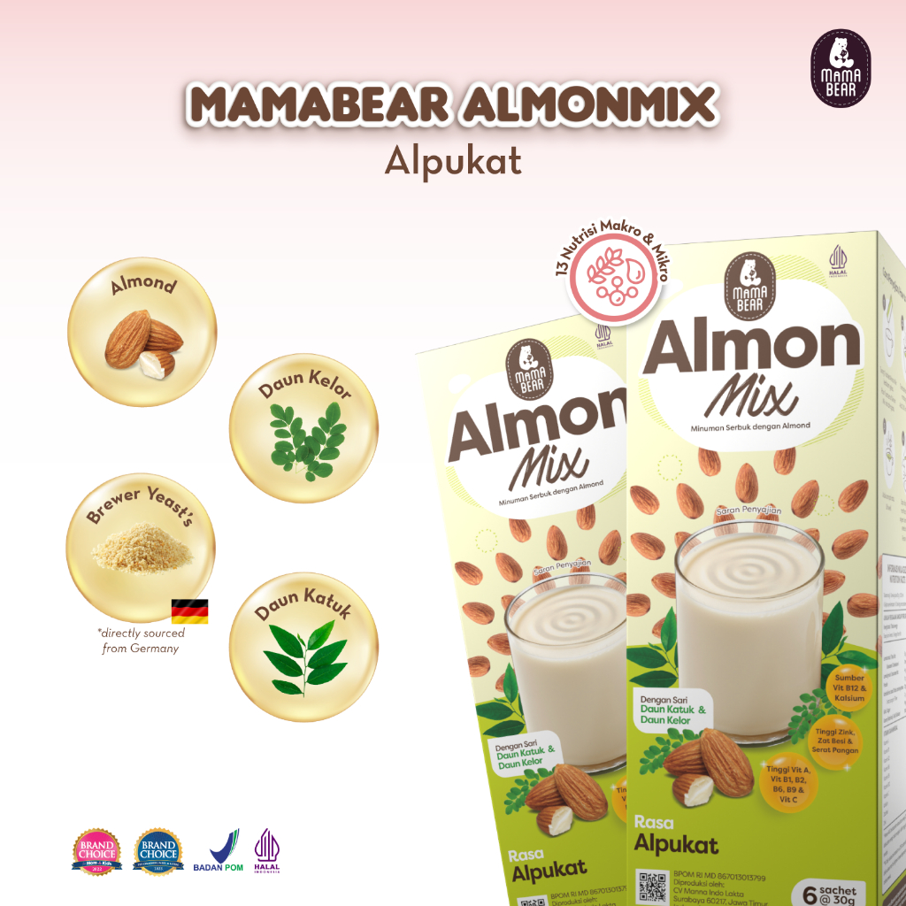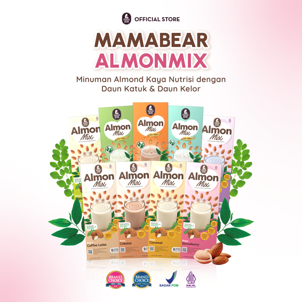MAMABEAR ALMONMIX MINUMAN SERBUK DENGAN ALMOND BPOM HALAL DENGAN KATUK DAN DAUN KELOR