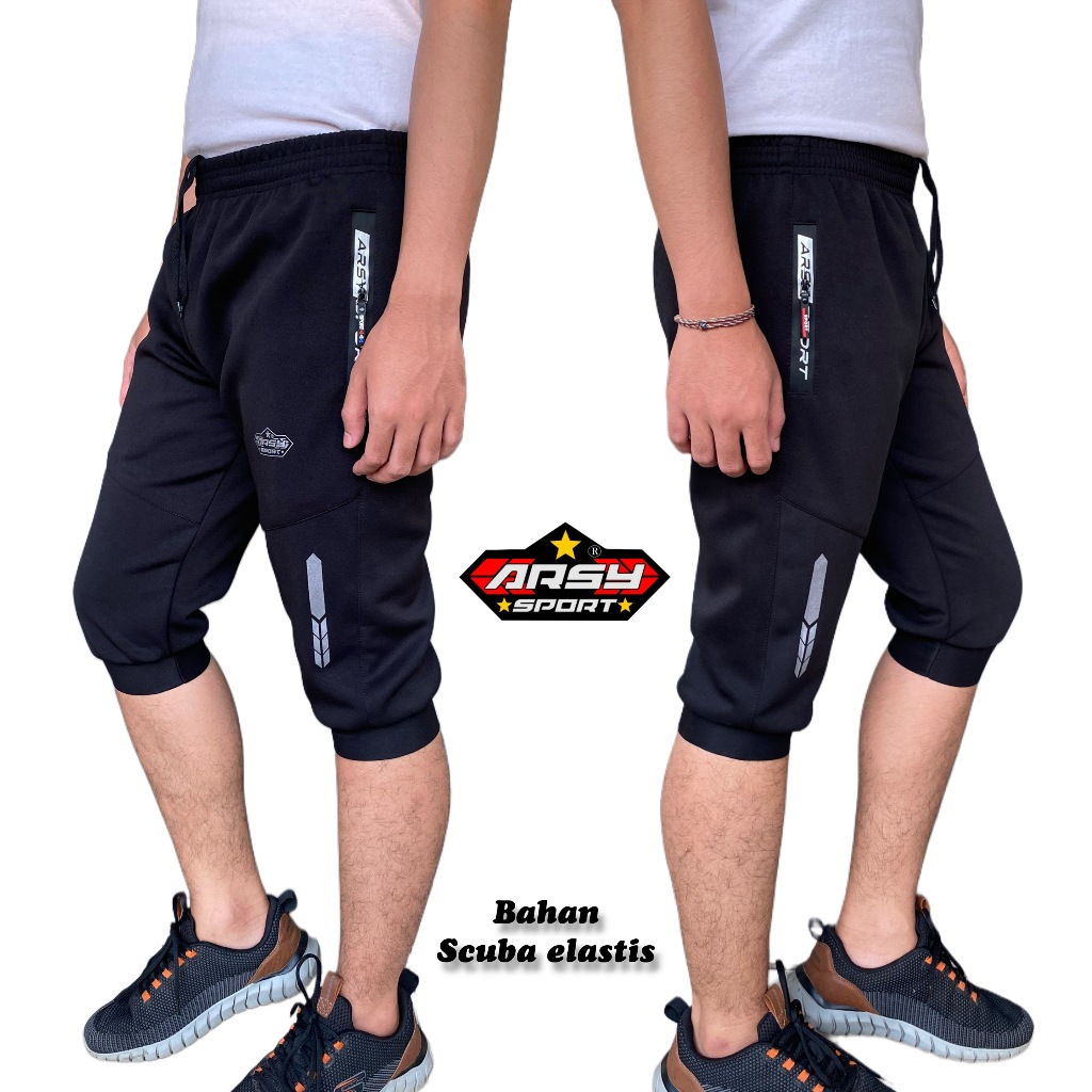 Arsy Sport Celana Running Pria Wanita - Celana Sontog 3/4 Fitnes Gym Bahan Scuba Elastis SS01