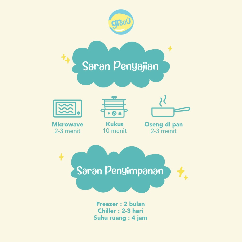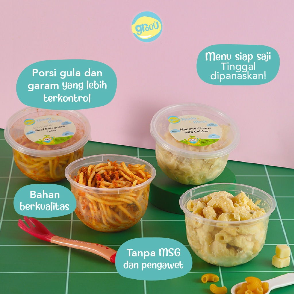 GROUU READY MEALS SIAP SAJI MAKANAN BAYI MPASI ALAMI TANPA PENGAWET (NASI KUNING NASI GORENG PASTA NASI TIM MAC & CHEESE) NO MSG
