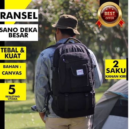 Tas Ransel Deka Besar Hitam Backpack Carrier Camping Hiking Tas Travelling Ransel Backpack Gunung Bahan Kanvas Tas Ranse